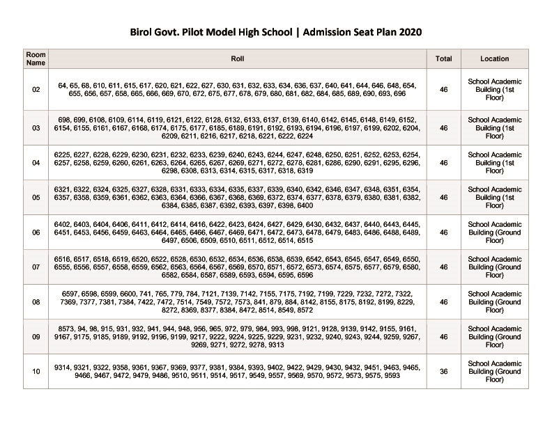 7. পরীক্ষার Seat Plan পরীক্ষার পূর্বের দিন SMS এর মাধ্যমে অভিভাবকের মোবাইলে পাঠিয়ে দেয়া হবে এবং ওয়েব সাইট ও নোটিশ বোর্ডের মাধ্যমে প্রকাশ করা হবে।